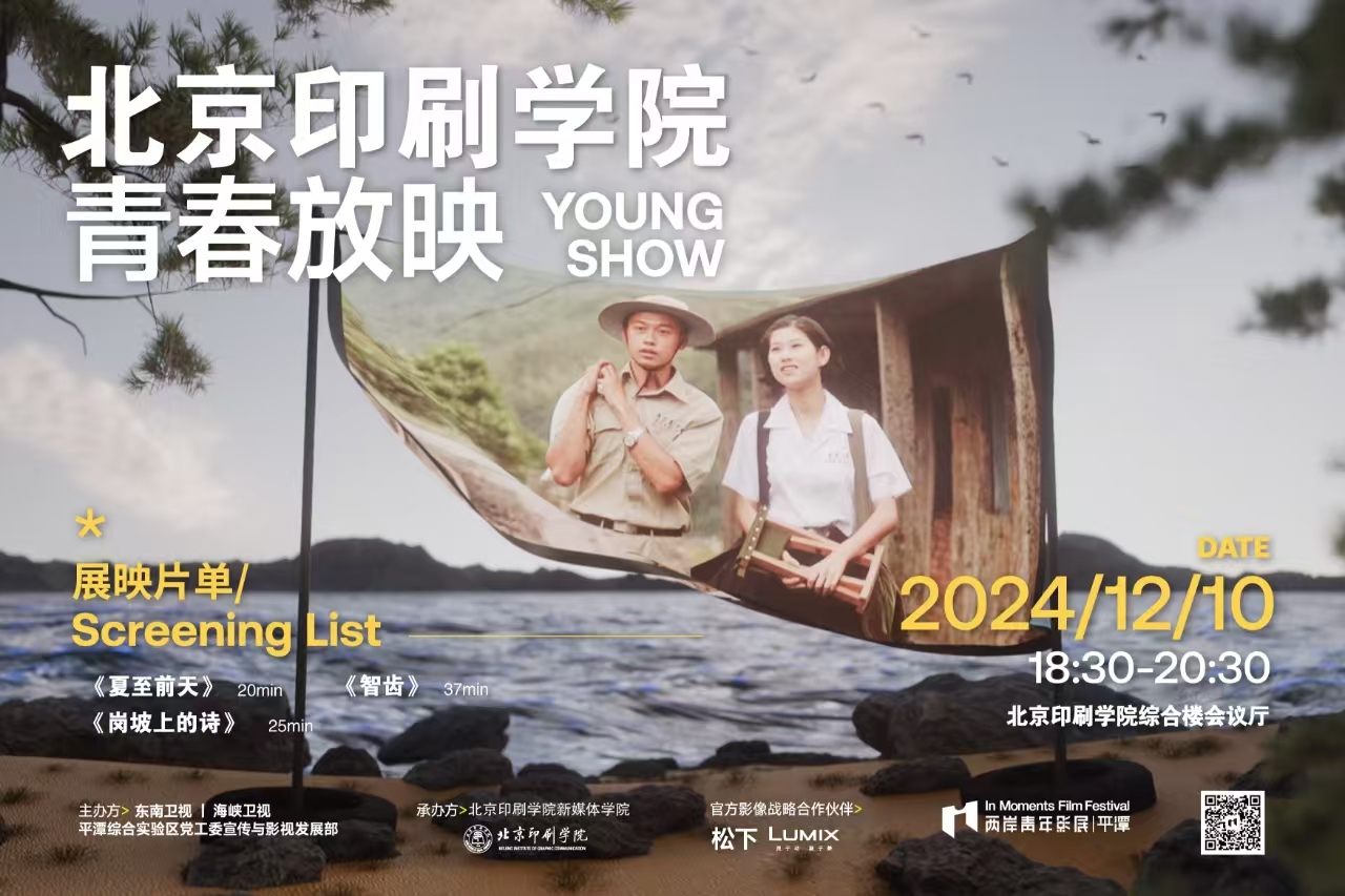 活动内容:2024年秋季学期,IM两岸青年影展·青春放映携手必赢国际437官网新媒体学院,于必赢国际437官网综合楼会议厅开展2024年度的青春放映活动。新媒体学院作为学校首个多学科交叉融合的二级学院,致力于创意实践的研究,本次活动作为承办方,致力于将优秀学生作品呈现给师生,构建一个分享与交流创作经验的平台。IM两岸青年影展(In Moments Film Festival,缩写:IMFF)是以扶持全球高校华人青年影视创作新力量为目标,集竞赛、论坛、训练营、展映等于一体的专业影像节展。IM是“In Moments”简称,意为“从这一刻起”。作为高校青年影视创作人成长路上的支持与见证者,IM倡导青年创作人以影像为手段,呈现多元时代下社会发展的真诚表达。本次特别放映的优秀获奖作品分别是:第四届IM两岸青年影展入围剧情短片《夏至前天》、第四届IM两岸青年影展麒麟优秀短片《岗坡上的诗》、第四届IM两岸青年影展入围剧情短片《智齿》。
