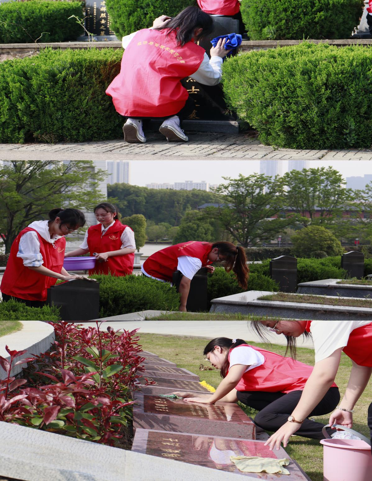活动中,志愿者们发扬不怕脏,不怕累的优良作风和团结协作精神,个个精神饱满、干劲十足,拿着扫帚、抹布、水桶等劳动工具,认真对烈士陵园周边的垃圾以及墓碑上的灰尘等进行了全面彻底的清理,使烈士陵园的环境面貌焕然一新。