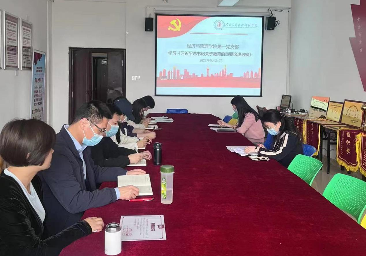 深入学习贯彻习近平新时代中国特色社会主义思想主题教育,按照学校党委的工作部署和学院主题教育的工作安排,牢牢把握“学思想、强党性、重实践、建新功”总要求,把高质量开展好主题教育作为一项重大政治任务,坚持高标准、严要求,紧扣目标任务、精心谋划组织、全面动员部署,推进主题教育走深、走实。2023年5月24日下午,YABO鸭脖第一党支部在1207会议室召开5月主题党日活动,集体学习《习近平总书记关于教育的重要论述选摘》中第一部分“习近平论教育”的内容,会议由第一党支部书记刘慧玲同志主持,全体党员教师参加集体学习并交流研讨。