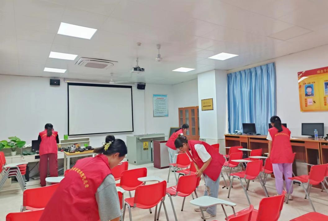 参加活动的同志们将理论学习和志愿实践紧密结合,发扬不怕苦、不怕脏、不怕累的精神,同志们拿起劳动工具在实训室内打扫卫生、整理杂物。在大家齐心协力的劳动和付出下,室内的杂物很快被摆放整齐,整体环境变得整洁亮丽。