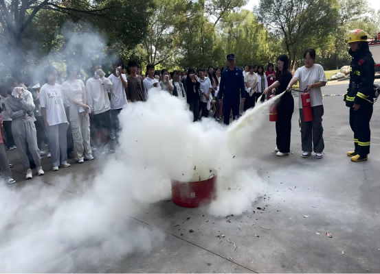 在消防演练环节,学院学生贯彻落实消防演练活动。在专业人员的指导下,师生们积极参与,熟悉了火灾发生时的应急疏散流程和灭火器材的使用方法。通过实战演练,使师生们更加熟练掌握火灾应对技巧,为应对突发情况打下了坚实的基础。