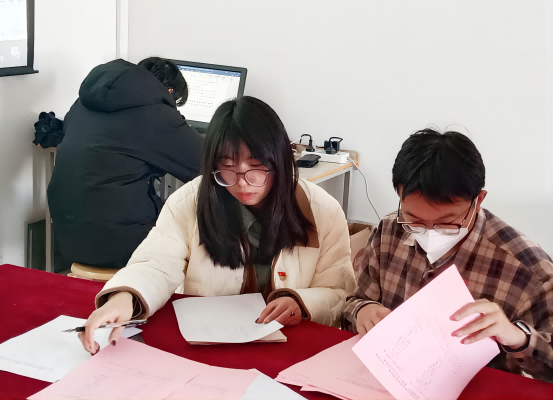 (图为两位计票人进行票数统计)