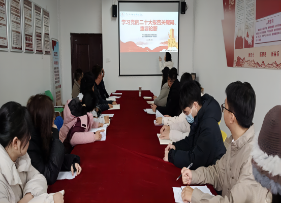 为深入贯彻党的二十大精神,学习习近平新时代中国特色社会主义思想,鸭脖第一党支部于2023年12月19日在1207党员活动室开展党的二十大精神学习培训——学习党的二十大报告关键词、重要论断。