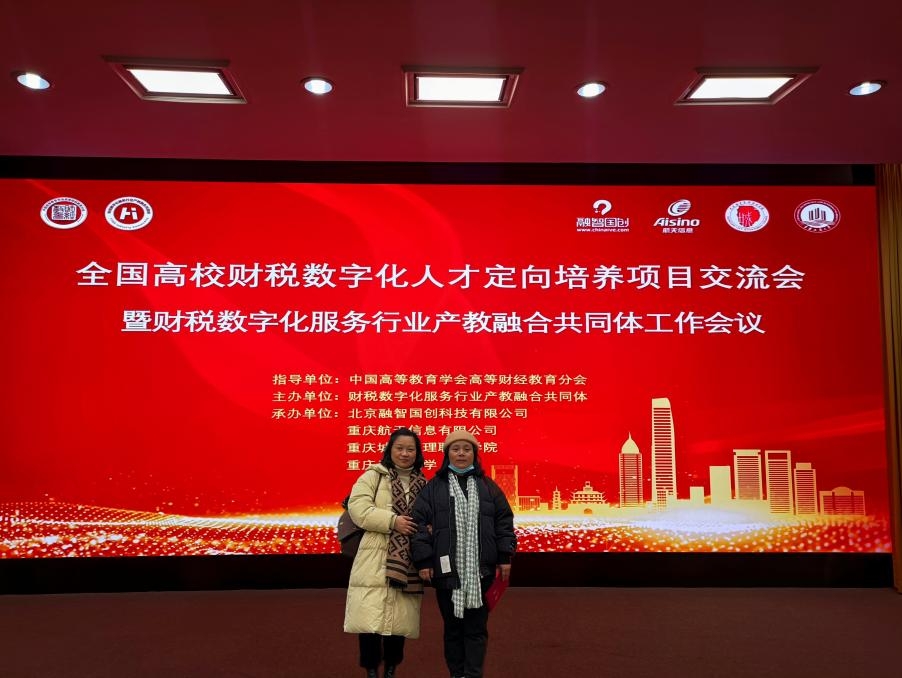 1月19日,经济与管理学院院长胡梨花、双师型教师熊丽华赴重庆参加全国高校财税数字化人才定向培养项目交流会暨财税数字化服务行业产教融合共同体成立大会及参加全国高校财税数字化人才培养“双师型”师资高级研修班。大会在中国高等教育学会高等财经教育分会、中国教育发展战略学会产教融合专业委员会指导下,由重庆城市管理职业学院主办,重庆工商大学、重庆航天信息有限公司、北京融智国创科技有限公司、博特产业(北京)技术有限公司协办。