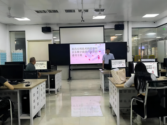研讨会由京东物流教育的卢燕青先生主持,旨在探索校企合作新模式,打造符合现代商业教育需求的实训环境。此次会议聚集了来自鸭脖的多位专业教师,以及京东物流教育研究院的代表,共同就实训室的功能定位、技术配备、课程设置等方面进行了深入的讨论。