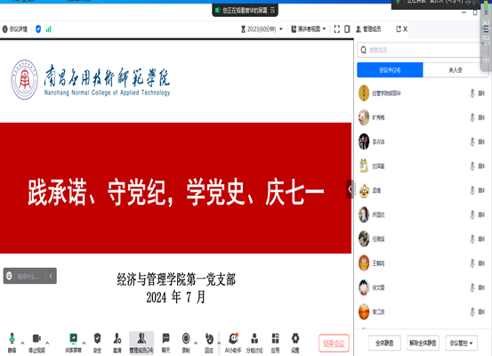 为热烈庆祝中国共产党成立103周年,传承红色基因,弘扬伟大建党精神,深入贯彻落实全面从严治党向纵深发展,鸭脖第一党支部于2024年7月11日,开展“践承诺、守党纪,学党史、庆七一”七月主题党日活动,活动由支部书记王佳乐主持。