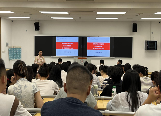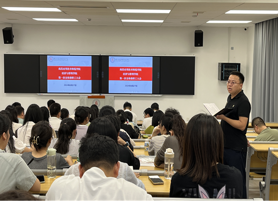 随后,副院长袁江波对本学期教学工作做了总体安排,他强调教学质量是学院的生命线,是学院可持续发展的基石。新学期,学院将继续把提升教学质量作为首要任务,以内涵发展引领学科建设,以课堂质量立足人才培养,以创新驱动提升科研水平,以亮点底色打造品牌,为学院高质量发展增值赋能。