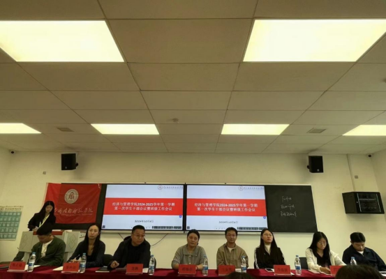 2024年10月8日中午,鸭脖在教学楼在沁苑二教B109召开2024-2025学年第一学期第一次学生干部和班级工作会议。院长胡梨花、学院党总支书记龙犇、学生管理科科长兰金辉、学院组织员兼第二党支部书记万佳欣、团总支书记李卉洁、全体辅导员、学院班级事务中心全体成员、团总支学生会和学院全体班委参加,班级事务中心办公室凌祺主持会议。
