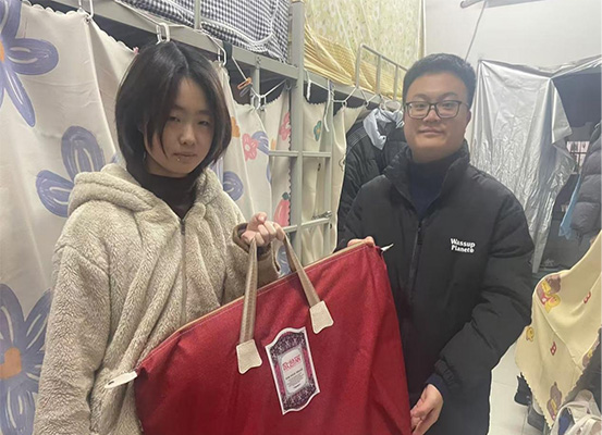 座谈会尾声,龙犇用“感恩、励志、奋斗”三个关键词,为同学们送上了真挚的寄语,激励大家在学业道路上勤奋刻苦、砥砺前行,不断提升自身综合素质,努力追求卓越,以优异的成绩回报社会与国家的培育之恩。学院领导给同学们分发了冬天御寒物资等慰问品,并合影留念。