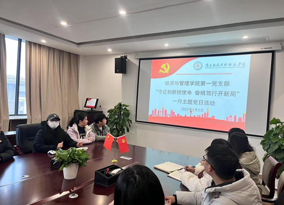 为深入贯彻落实党的二十大及党的二十届三中全会精神,进一步激发党员干部的使命感和责任感,奋力开创各项工作新局面。鸭脖第一党支部于2025年1月3日在沁苑八实506会议室开展“守正创新担使命,奋楫笃行开新局”一月主题党日活动,会议由第一党支部副书记王佳乐主持,支部党员参会。