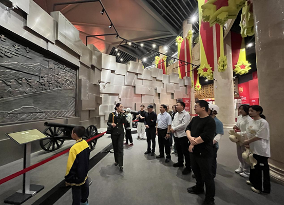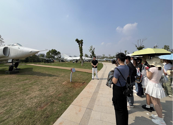 随后,大家一同乘坐大巴前往南昌军事主题公园参观学习。结合鸭脖旅管专业特色,3名旅管专业学子就园区及展馆内展出的部分军事装备和轻武器展览进行了讲解,方便大家深入了解我军装备发展历程,是一堂生动的国防教育课,有力助推了鸭脖“党建+红色讲解”品牌建设。