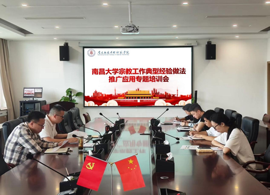 会议开始,许亮着重强调了统战工作在高校意识形态领域的关键意义。他指出,宗教问题始终是我们党治国理政必须处理好的重大问题,高校作为意识形态工作的前沿阵地,做好宗教工作意义深远。紧接着他对南昌大学宗教工作成功经验和做法进行了全面且深入的阐释,并针对鸭脖实际情况提出推广建议:一是要精准把握新时代民族与宗教工作的政治导向,以战略眼光推动政策落地见效;二是持续强化铸牢中华民族共同体意识,通过多样化形式深化民族宗教政策宣讲,确保工作取得实效;三是积极创新工作机制,结合学院实际,深入推广运用南昌大学宗教工作成功经验和做法,持续用好学校宗教工作“41333”工作模式,不断提升宗教工作精准度,切实落实立德树人根本任务。