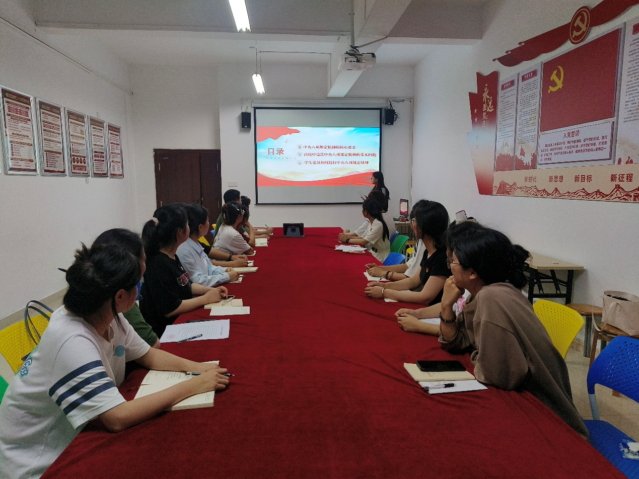 万佳欣表示,学生党员作为学生群体中的先进分子,一言一行都对身边的同学有着重要的示范作用。希望大家以中央八项规定精神为指引,在青春的道路上坚守廉洁自律,践行初心使命,以良好的作风和精神风貌,为实现中华民族伟大复兴的中国梦贡献自己的青春力量!
