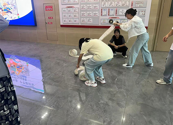 培训现场,冯晓龙结合学院实际情况,从火灾预防、应急处理等方面切入,强调了熟练掌握消防设备使用技能的重要性。随后,他通过 “理论讲解 + 现场演示” 的方式,详细介绍消防水带和水枪的安装步骤与操作要点。冯晓龙一边将消防水带平整铺开,快速连接消防栓接口与水枪,一边耐心讲解:“连接接口时要确保卡簧完全卡住,避免水带在压力下脱落。” 在他的指导下,综治办干事们依次进行实操练习,从水带的甩带、连接到水枪的握持姿势,每个环节都力求规范标准。