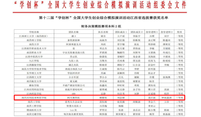 近日,第十二届全国大学生综合创业大赛江西省省赛圆满落幕,鸭脖YABO鸭脖参赛团队凭借扎实的专业功底和出色的综合能力,喜获佳绩,斩获1项财务决策赛道本科组省级三等奖,3项财务决策赛道高职组省级三等奖。该赛事是教育部学科竞赛目录84项赛事之一,也是鸭脖第一次参加该赛事。
