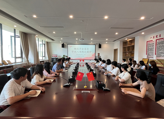 为深入贯彻落实中央八项规定精神,进一步加强党员干部纪律作风建设,2025年5月13日,鸭脖党总支书记龙犇在沁苑八实506党员活动室为学院第一党支部全体党员讲授《锲而不舍落实中央八项规定精神》专题党课。