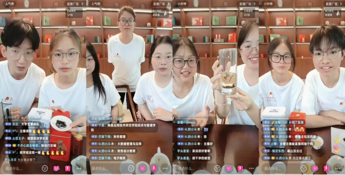 在直播中,同学们以专业且生动的方式,向网友们介绍金盘村茶叶的特色与优势,详细讲解茶叶生长的自然环境、独特的制茶工艺,还现场冲泡,展示茶叶的色泽、香气和口感。短短几个小时的直播,吸引了数千人观看,收获了大量点赞和评论,不少网友表示对金盘村茶叶产生浓厚兴趣,询问购买渠道。
