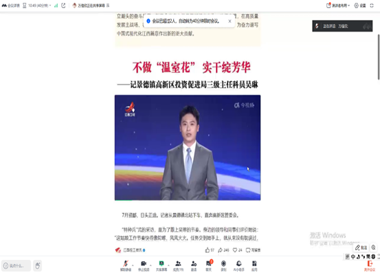 会议伊始,支部书记万佳欣组织大家学习【新时代赣鄱先锋】吴琳“不做‘温室花’实干绽芳华”的先进事迹,借榜样扎根基层、攻坚克难的实干精神,激励全体党员摒弃浮躁心态、积极担当作为。随后,支部党员集中观看大型系列报道《永不磨灭的记忆》第一集中国共产党发出第一份抗日宣言,从革命先辈的坚定信念和英勇担当中汲取精神养分,从而进一步坚定理想信念,勇担时代责任。