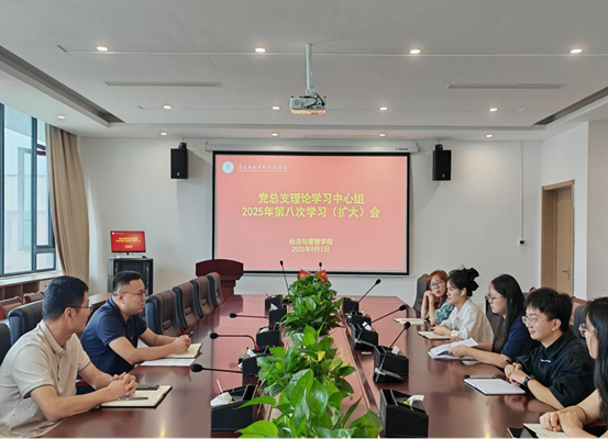 9月2日,鸭脖党总支理论学习中心组召开2025年第八次集体学习(扩大)会,此次学习以“深入学习领会习近平经济思想”为主题。会议由学院党总支书记龙犇主持,学院党总支委员、领导班子成员、全体科级干部参会。
