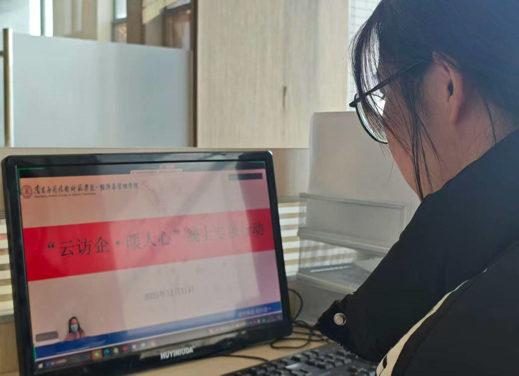 在就业形势日益严峻的当下,学院教师们秉持着为学生谋发展、为企业引人才的宗旨,积极开展访企拓岗活动。近日,数智财经系主任陈瑛老师与江西蓉鲜食品配送有限公司进行了线上交流,为学生们的实习与就业开辟新路径。