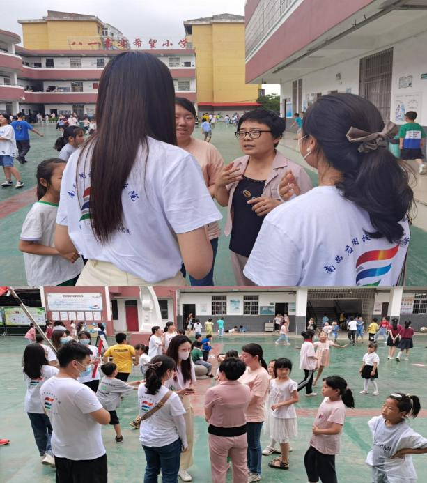 随后,体育专业的志愿者们带领着孩子们走出课堂,他们运用所学的专业知识,为孩子们带来了一节生动有趣的体育课,孩子们在实践中探索,在实践中发现,团队的协作精神和凝聚力是十分重要且必不可少的。