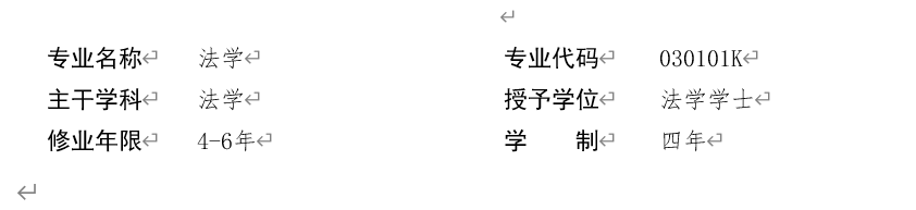 培养目标1:(专业知识)掌握法学的基本知识和基本理论,熟悉人文社会科学和自然科学的基础知识,并形成合理的整体性知识结构,能够胜任法律实务工作。